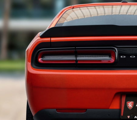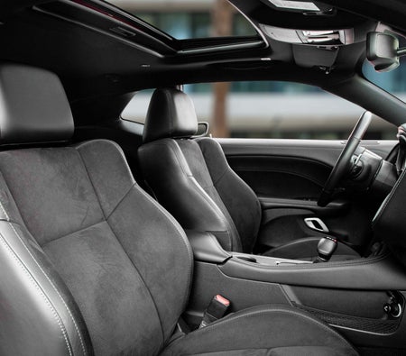 The دودج تشالنجر آر تي سيارات العضلات مُدرجة من قبل ألبا موتورز ذ.م.م. - 2 أبواب سيارات العضلات تتسع لـ 5 ركاب و 2 حقيبة (حقائب) متوسطة الحجم.