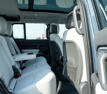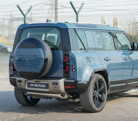 The 2025 Defender 110 XDynamic HSE P400 Marine Blue sale in Dubai. Available from AKMOTORS. Rugged yet refined, the Defender 110 XDynamic HSE P400 blends offroad toughness with luxury. Powered by a 3.0L inline6 mild hybrid engine, it delivers 395 hp with smooth performance, advanced tech, and iconic Land Rover capability