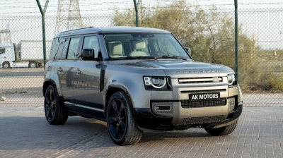 The 2025 Defender 110 XDynamic HSE P400 silicon silver sale in Dubai. Available from AKMOTORS. Rugged yet refined, the Defender 110 XDynamic HSE P400 blends offroad toughness with luxury. Powered by a 3.0L inline6 mild hybrid engine, it delivers 395 hp with smooth performance, advanced tech, and iconic Land Rover capability