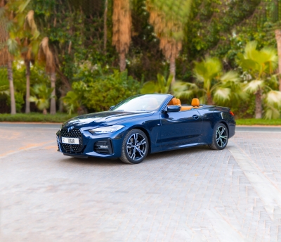Rent and Drive this BMW 420i Convertible M Kit 2023-model in Dubai, UAE  for USD 190/day. Rental cost includes basic comprehensive insurance and standard mileage limit of 200 km/day (USD 1.36 per additional km applicable). Security deposit of USD 1360 is required. Contact MKV Car Rental directly for bookings and inquiries...