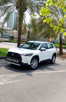 Rent and Drive this Toyota Corolla Cross 2024-model in Dubai, UAE  for USD 44/day & USD 680/month. Rental cost includes basic comprehensive insurance and standard mileage limit of 250 km/day (USD 0.14 per additional km applicable). Security deposit of USD 272 is required. Contact Golden Beach Rent a Car directly for bookings and inquiries...