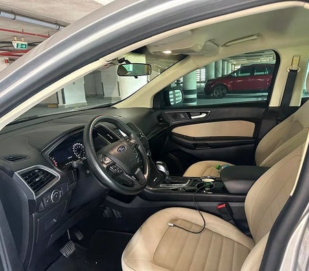 Ford Edge is one amazingly capable crossover. Its standard 3.5L Ti-VCT V6 engine produces 285 net horsepower and only uses 8.7L/100 km hwy, allowing you to maximize every trip. The Ford Edge brings you the revolutionary all-new available MyFord Touch driver connect technology — powered by the latest version of our award-winning Ford SYNC® system that allows you to make and take calls, and select music all with voice commands. Space is a good thing. Especially on the highway. Adaptive cruise control and collision warning with brake support uses radar sensors to help maintain your choice of 4 preset gaps between your Edge and the vehicle in front of you. It also uses those same front sensors to alert you to a potential collision. If one is detected, it flashes a warning across your windshield and sounds an alarm, providing extra time for you to apply the brakes. Rent Ford Edge Dubai from all the leading car rental agencies here.
