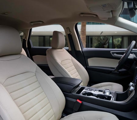 Ford Edge is one amazingly capable crossover. Its standard 3.5L Ti-VCT V6 engine produces 285 net horsepower and only uses 8.7L/100 km hwy, allowing you to maximize every trip. The Ford Edge brings you the revolutionary all-new available MyFord Touch driver connect technology — powered by the latest version of our award-winning Ford SYNC® system that allows you to make and take calls, and select music all with voice commands. Space is a good thing. Especially on the highway. Adaptive cruise control and collision warning with brake support uses radar sensors to help maintain your choice of 4 preset gaps between your Edge and the vehicle in front of you. It also uses those same front sensors to alert you to a potential collision. If one is detected, it flashes a warning across your windshield and sounds an alarm, providing extra time for you to apply the brakes. Rent Ford Edge Dubai from all the leading car rental agencies here.