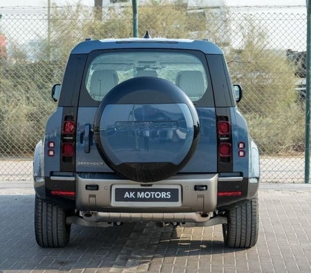 The 2025 Defender 110 XDynamic HSE P400 Marine Blue sale in Dubai. Available from AKMOTORS. Rugged yet refined, the Defender 110 XDynamic HSE P400 blends offroad toughness with luxury. Powered by a 3.0L inline6 mild hybrid engine, it delivers 395 hp with smooth performance, advanced tech, and iconic Land Rover capability