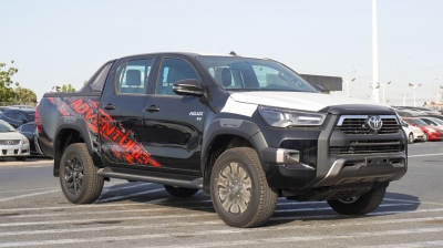 Brand new Toyota Hilux Adventure .L V for sale in Dubai. Black model, available at Najem Motors. This car has automatic transmission, cylinder engine, ″ wheels and black interior. GCC specs.