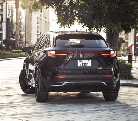 Alquila y conduce Esta Lexus NX 350 2022-Modelo en Dubai, EAU  para USD 75/día & USD 1605/mes.El costo del alquiler incluye Integral básico seguro y el límite de millaje estándar de kilometraje: 200 km/día (USD 0.55 por adicional km aplicable). depósito de seguridad de USD 544 es requerido. Contacto Alquiler de coches Beyond Wheels directamente para reservas y consultas...