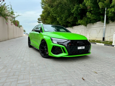 Louer et conduire Le présent Audi RS3 2024-Modèle en Dubai, EAU  pour USD 190/jour & USD 3509/mois. Le coût de la location comprend Base complète assurance et une limite de kilométrage standard de kilométrage: 300 km/jour (USD 1.36 par supplément km applicable). Dépôt de garantie de USD 680 est nécessaire. Contact Fifth Gear Rent A Car directement pour les réservations et les demandes de renseignements...