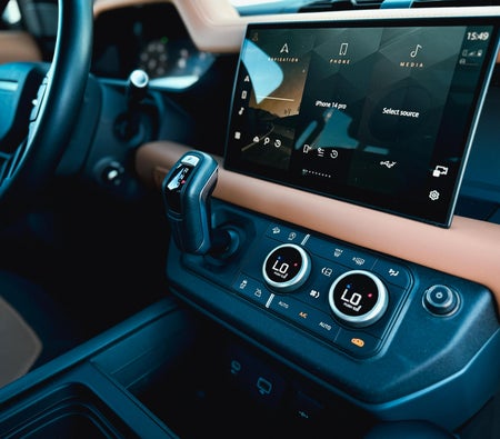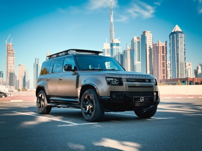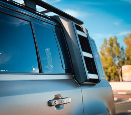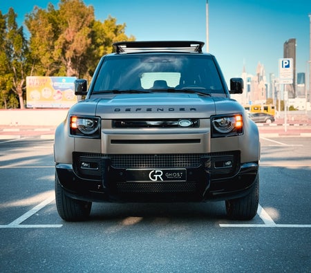 Louer et conduire Le présent Land Rover Defender 2024-Modèle en Dubai, EAU  pour USD 122/jour & USD 2584/mois. Le coût de la location comprend Base complète assurance et une limite de kilométrage standard de kilométrage: 250 km/jour (USD 0.55 par supplément km applicable). Dépôt de garantie de USD 408 est nécessaire. Contact Location de fantômes directement pour les réservations et les demandes de renseignements...