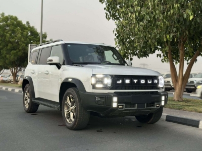 JETOUR T2 4WD CONQUEST PRO TRAVEL 2.0L TURBO FULL OPTION A/T model 2025 1. Champagne gold 2. decorative parts, sandfaced black front bumper lower trim:2. Frosted cabin decorative parts:3. Exclusive smoked black wheels, R19AT tires:4. Allblack rearview mirrors:5. Trailer hooks:6. Exclusive fender and tail logo:7. New key;8. 200,000 exclusive laser lights9. Exclusive embroidery, interior, logos, etc.10. The main and codriver trims use rock effect trims, and the 318 pattern can be lit11. AT tires provide better performance for complex road conditions with their excellent terrain adaptability, enhanced durability and traction12. The mud and sand mode is divided into mud mode and sand mode, with more accurate usage scenarios, smarter torque distribution, stronger escape ability, and upgraded offroad fun