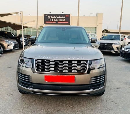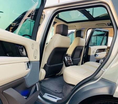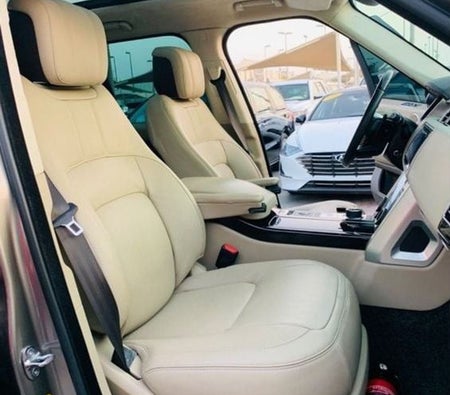 Range Rover Vogue Supercharged 6cylinder, P400 engine, Gulf, number one, full specifications, panoramic, leather, large screen, camera, fingerprint start, blind spot, large rims, original paint, accidentfree, original checks, after that under the agency warranty, gold car color with beige interior